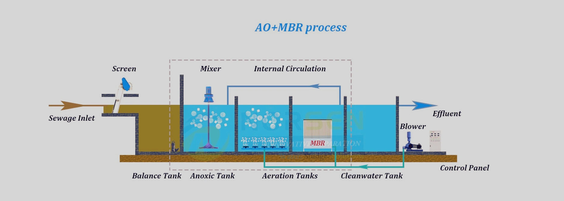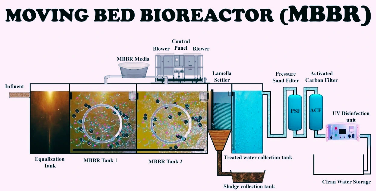 (Moving Bed Biofilm Reactor) is an advanced wastewater treatment technology that uses specially designed bio-media to support microbial growth for efficient organic degradation. It offers a compact, high-load, and self-regulating process, making it ideal for industrial and municipal wastewater treatment. MBBR ensures low sludge generation, high treatment efficiency, and ease of operation with minimal maintenance.